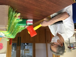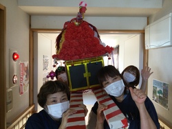 午後からは屋台風?のゲームを準備しました。手作りの「ワニワニパニック」「パチンコゲーム」「缶釣りゲーム」を全て個人戦で競って頂きました。もちろん1位だった方にはいい事が♪祭りは神輿を担いでひとまず…。